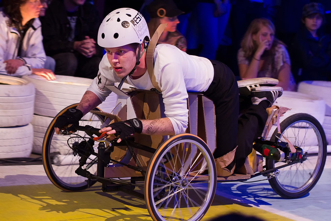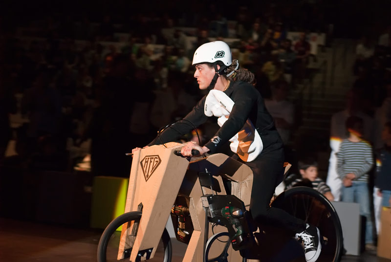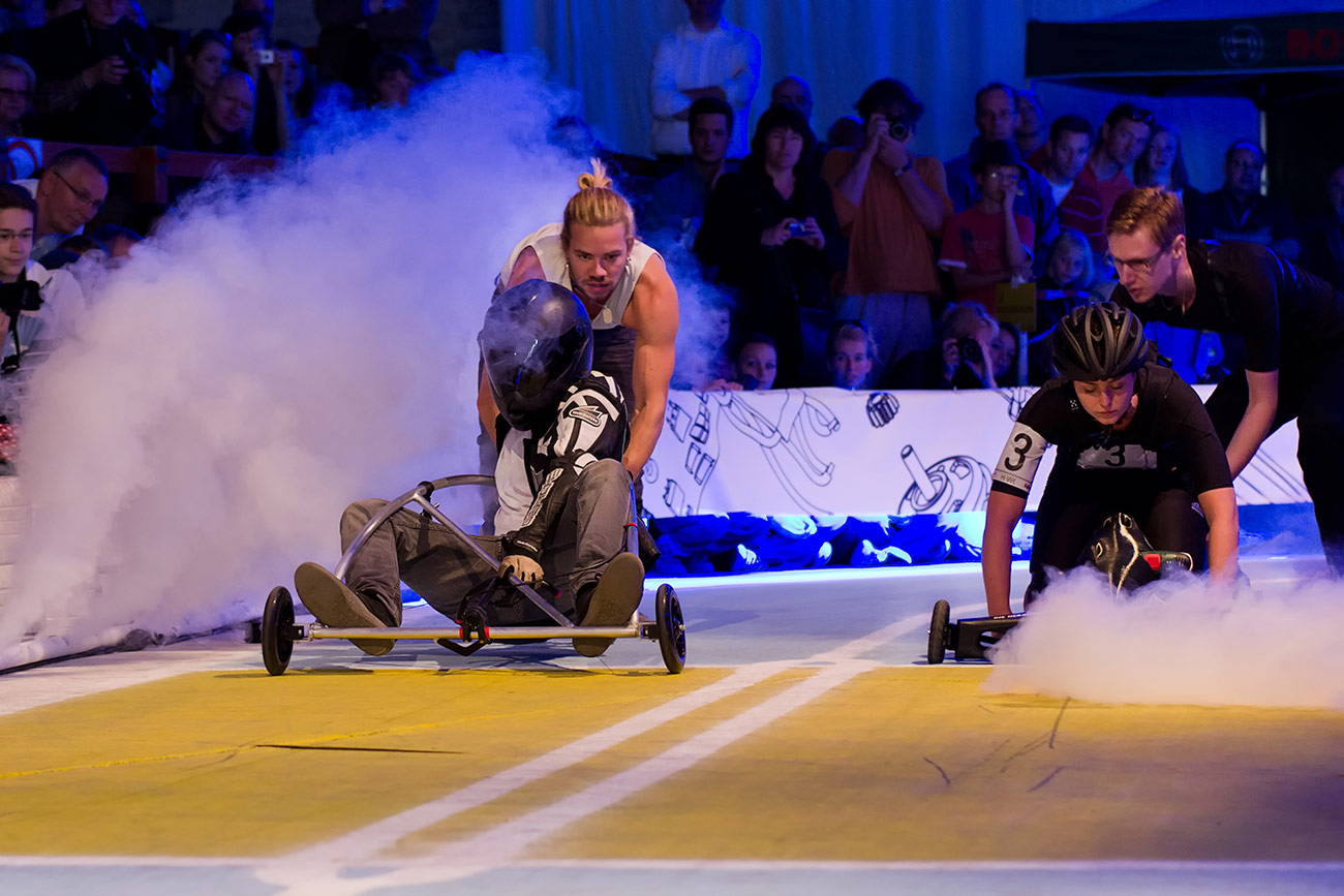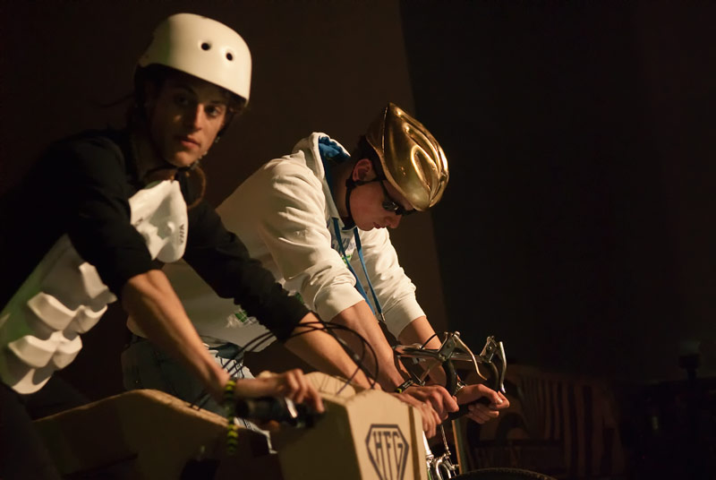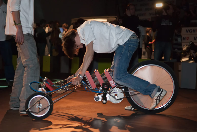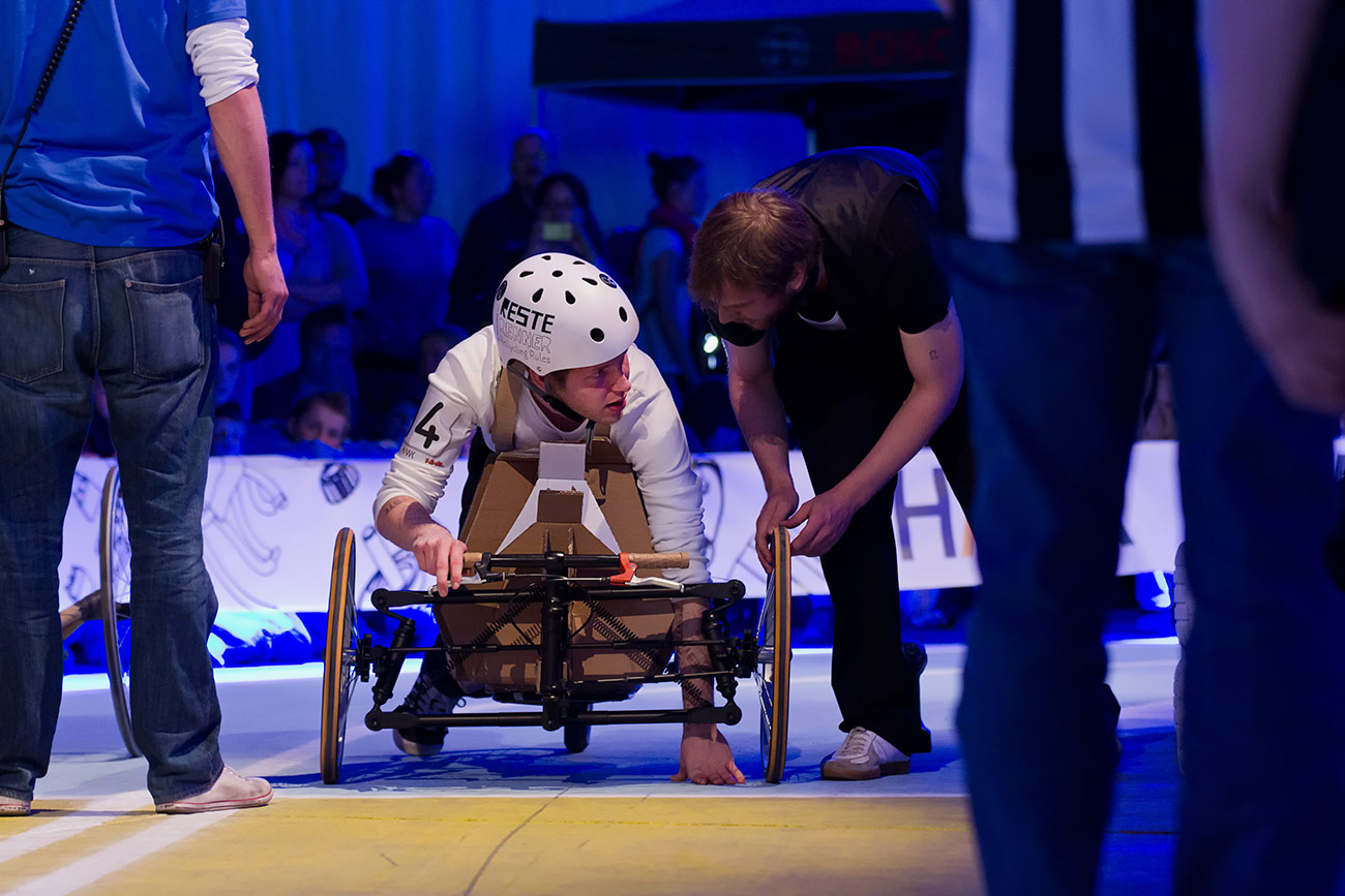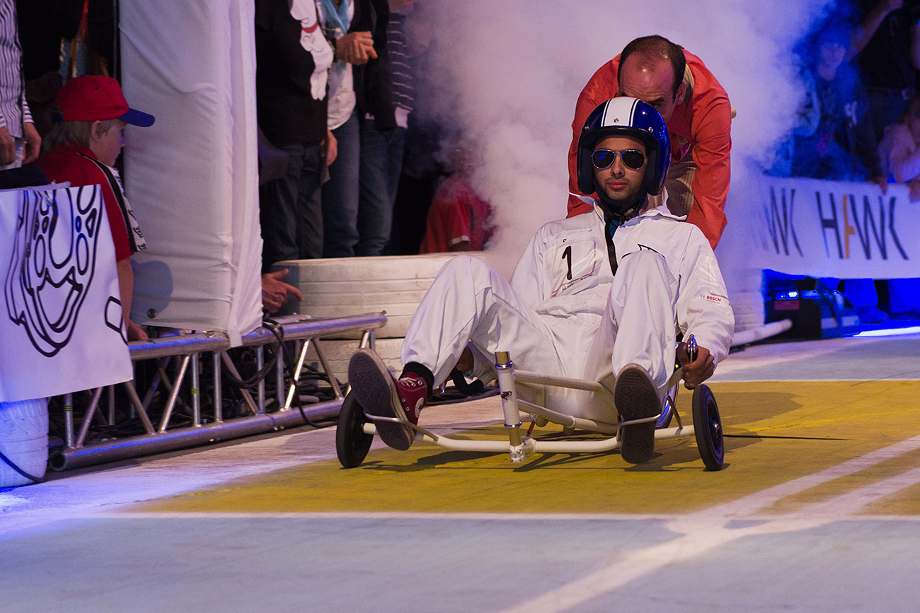 „Die Idee des Akkuschrauberrennens ist ebenso einfach wie überraschend: Gefährte, die von Akkuschraubern angetrieben werden, treten gegeneinander an. Die Fakultät Gestaltung der HAWK Hildesheim richtet das Rennen in 2009 schon zum sechsten Mal aus.“
